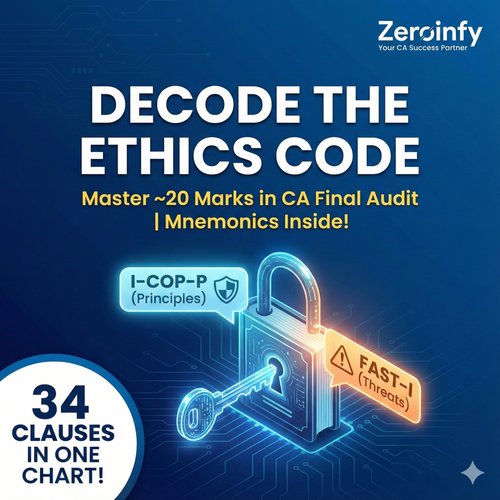 Professional Ethics covers ~20% of the CA Final Audit paper. Don't lose easy marks! Master the 34 Clauses, 2 Schedules, and 5 Threats with our "I-COP-P" and "FAST-I" mnemonics.