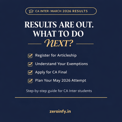 CA Intermediate January 2026 results declared on 8th March 2026 — and only 9.39% cleared both groups. Whether you passed, cleared one group, or are re-attempting in May 2026, the next 30 days will define your CA journey. This exhaustive guide covers articleship registration (Form 102 & 103), exemption rules...